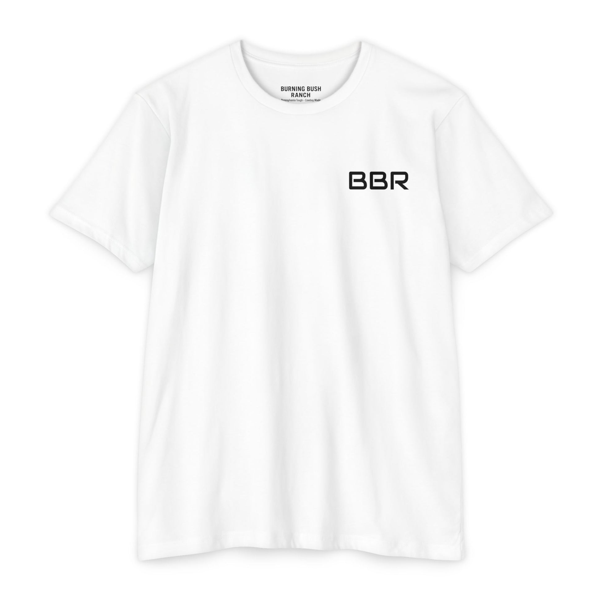 For the cowboy who likes his message clear, loud, and visible from across the pasture. This shirt puts BBR front and center in big, bold letters—no guessing, no subtlety, just straight-up ranch pride. Clean design, tough attitude, and the perfect everyday tee for anyone who lives the Burning Bush Ranch lifestyle.